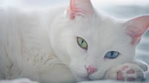 The cats, unique for their different eye colors and white fur, enjoyed calming music to help set the mood.